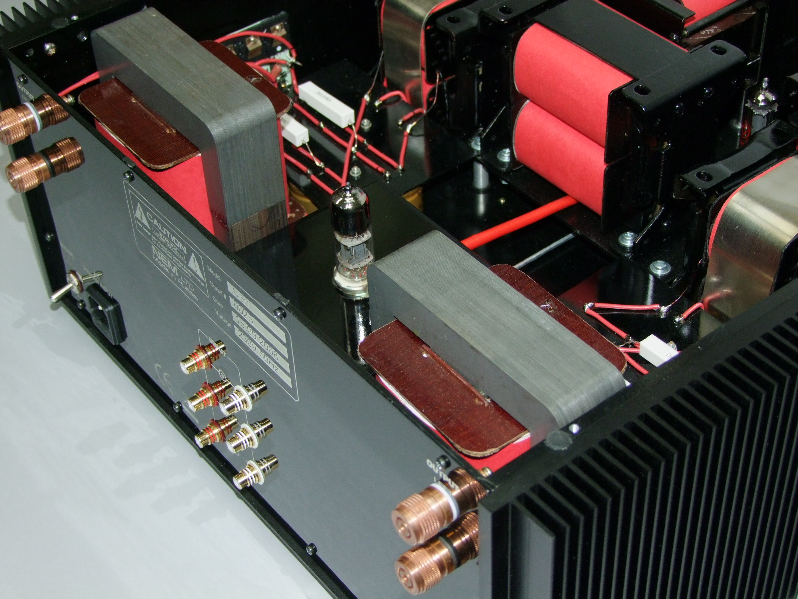 - 4 getrennte Netzteile versorgen Röhren-Vorstufe, Endstufen (kanalgetrennt) sowie Schutzschaltung/Automatik